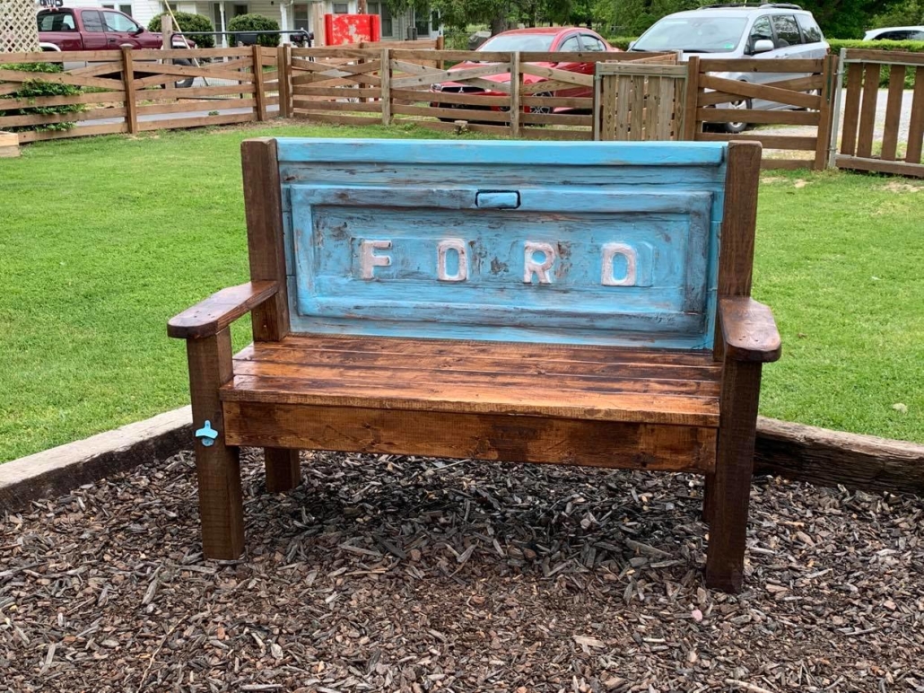 Custom, hand-crafted tailgate bench.